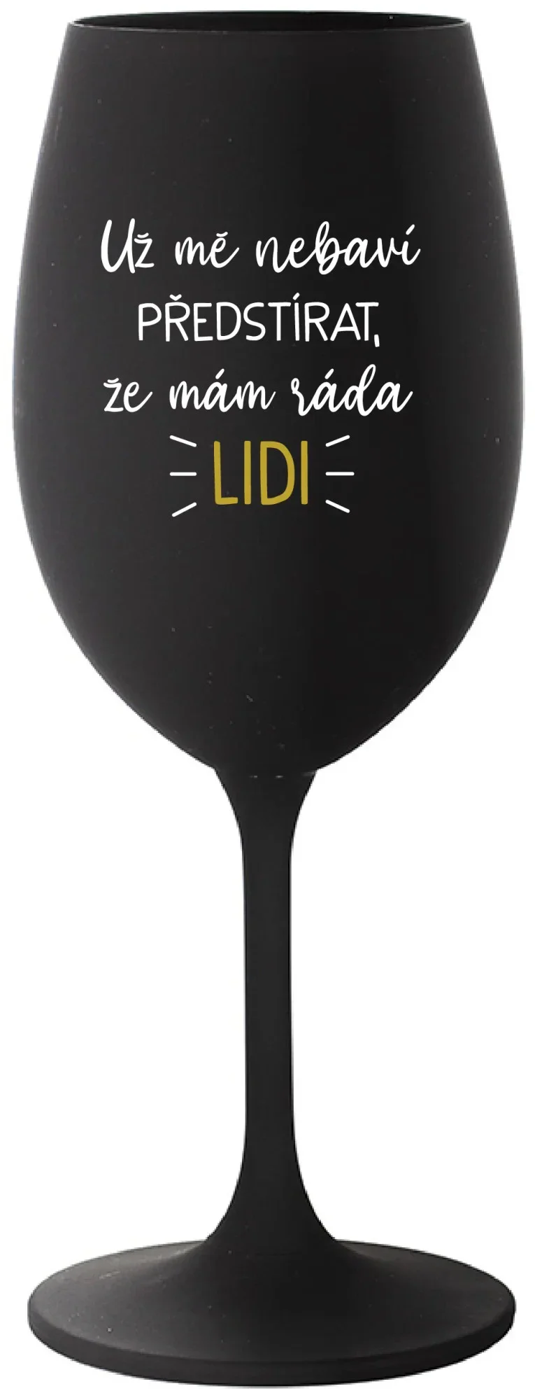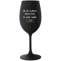 UŽ MĚ NEBAVÍ PŘEDSTÍRAT, ŽE MÁM RÁDA LIDI - černá sklenice na víno 350 ml