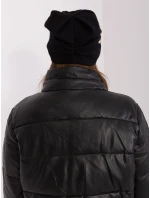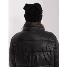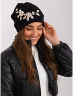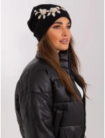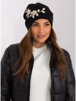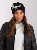 Černo-béžová pletená čepice s aplikací a zirkony.