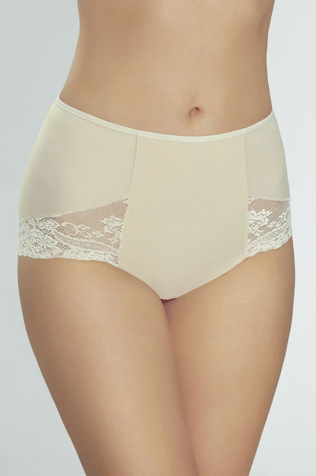 Jemně tvarující kalhotky, zdobené kolem stehen ažurovou krajkou. Umožňují dosáhnout efektu zeštíhlení břišní oblasti, přičemž si zachovávají velmi estetický a elegantní vzhled. Svislé šití na zadní straně, díky kterému se prádlo pěkně přizpůsobí hýždím. Složení: 80 % polyamid, 17 % elastan, 3 % bavlna.