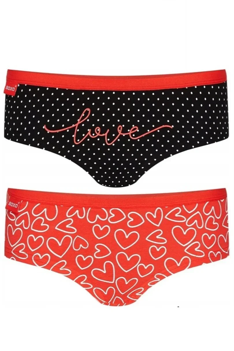 Dámské kalhotky. Valentýnská kolekce od SOXO vyrobená z nejkvalitnější bavlny s přídavkem elastanu, díky kterému jsou maximálně pohodlné, perfektně se nosí a přizpůsobí se tělu.Složení surovin: 95% bavlna, 5% elastan.