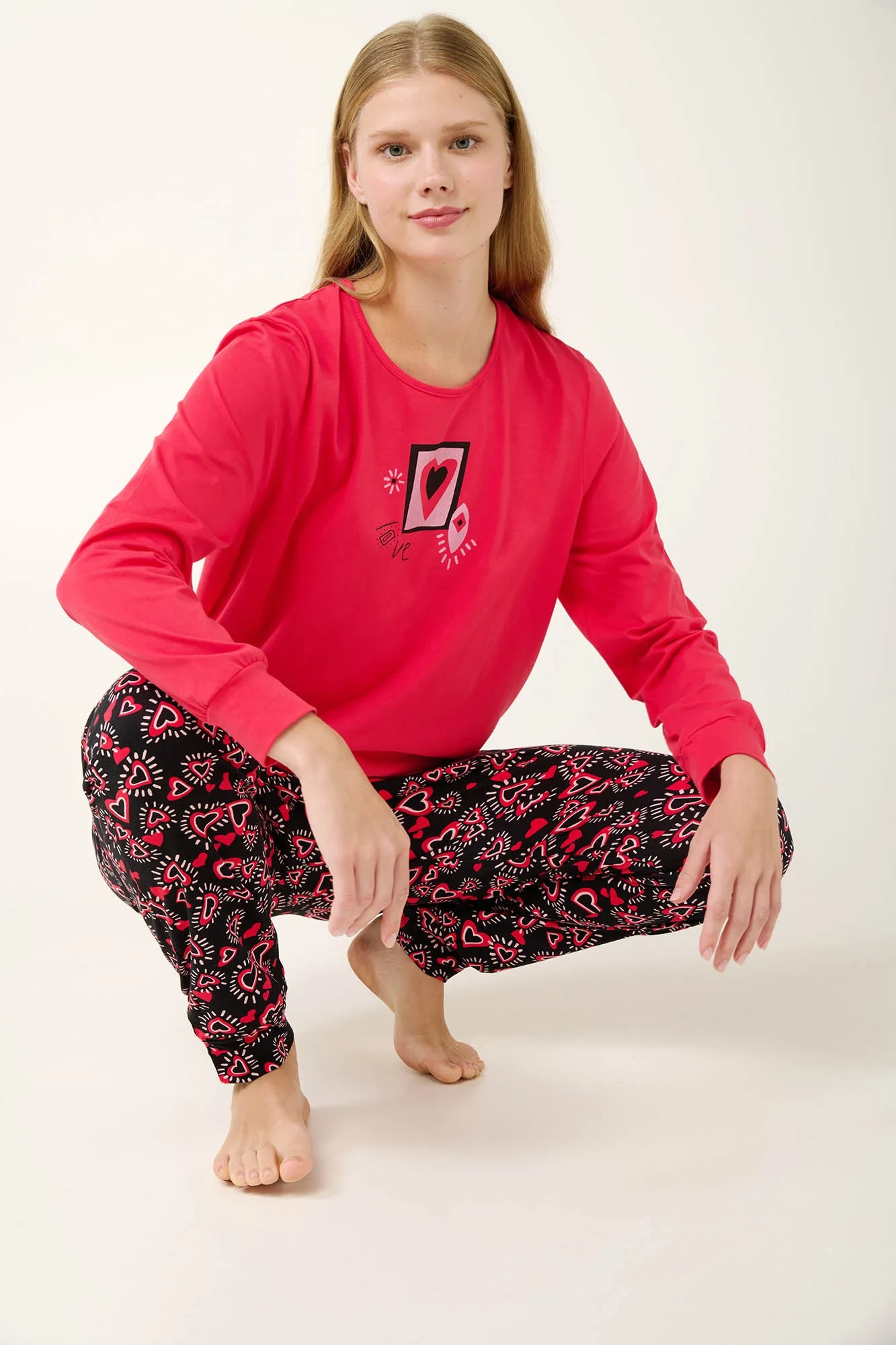 Vamp - Bavlněné dámské pyžamo s potiskem srdíček 21929 - Vamp
