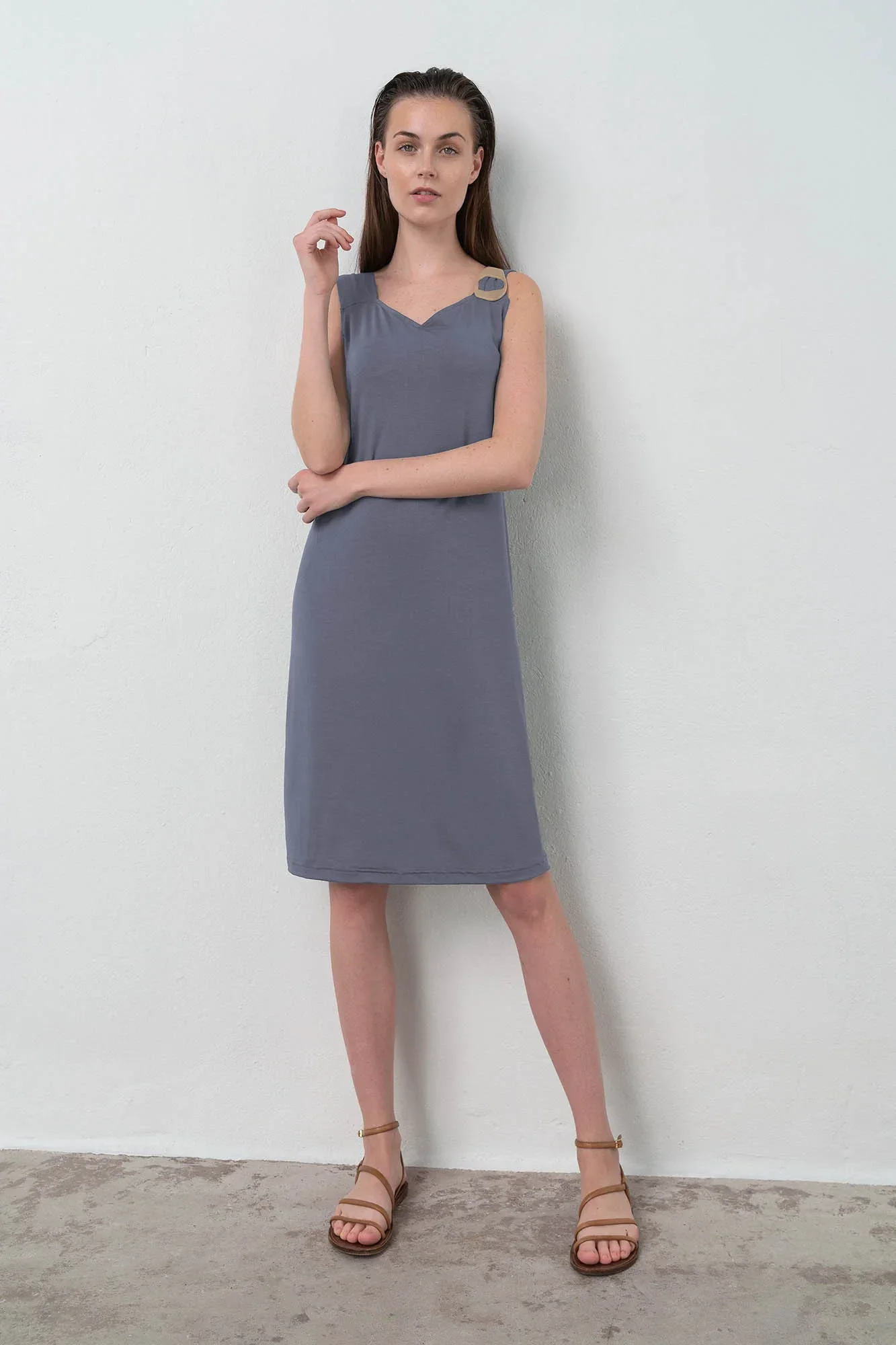 Elegantní dámské šaty na ramínka s výstřihem do V, vše co žena v parných letních dnech potřebuje. Šaty jsou vyrobené z kvalitní viskózy s příměsí elastanu. Viscoza se vyznačuje vysokou savostí, je dobře prodyšná, měkká a příjemná na dotek a elastan zaručuje lepší pružnost tkaniny.