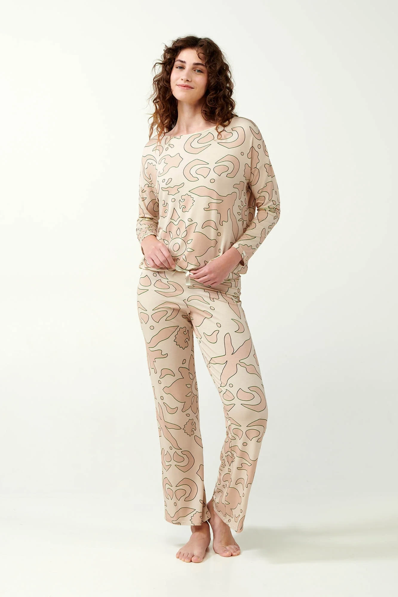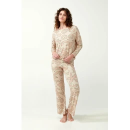 Vamp - Béžové dámské pyžamo s potiskem 21093 - Vamp