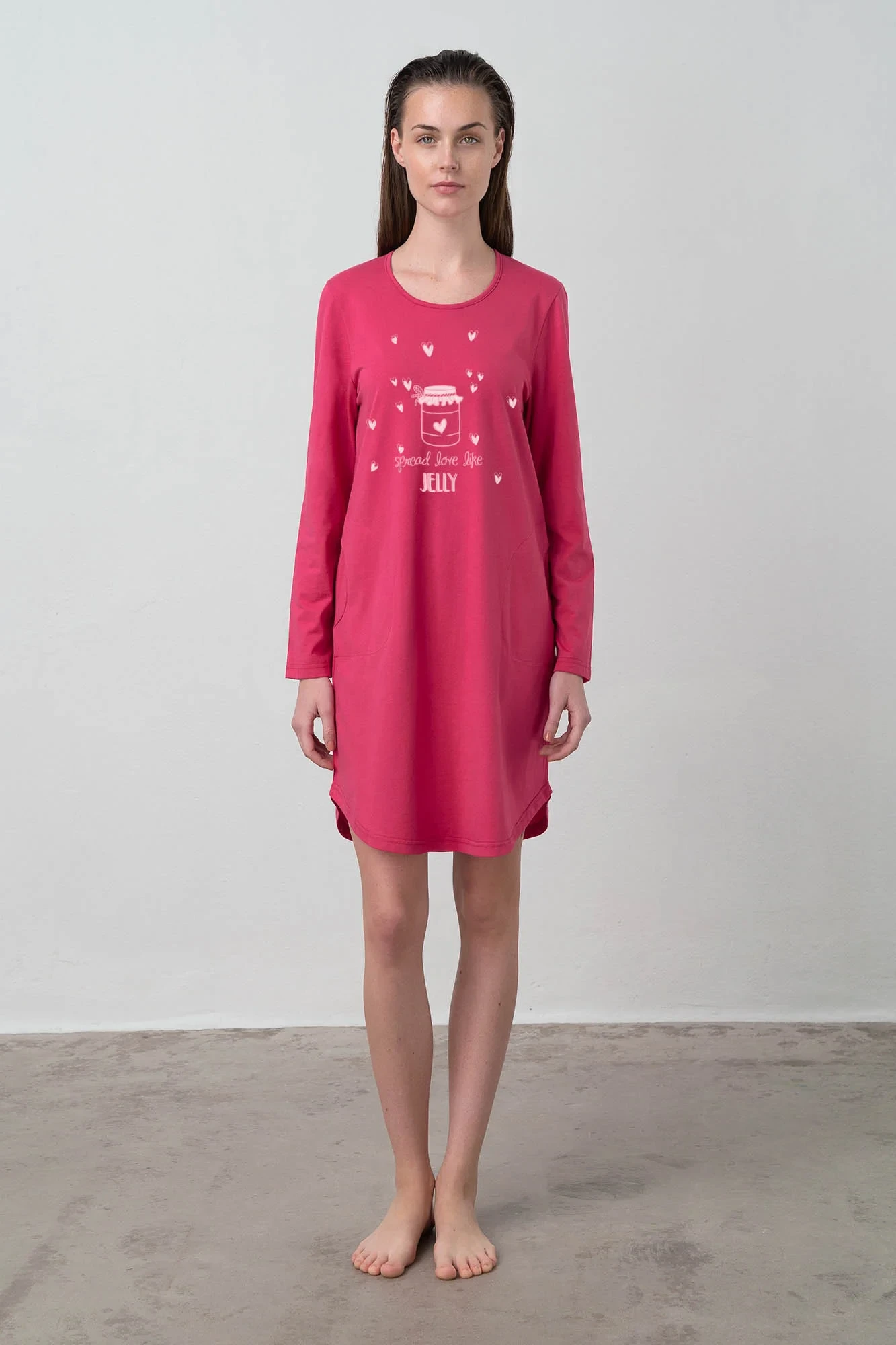 Dámská noční košile pro pohodlný spánek. Jednobarevná a roztomilá košilka s dlouhými rukávy a kulatým výstřihem je vyrobena z vysoce kvalitní, genetický nemodifikované řecké bavlny, která poskytuje vysoké pohodlí, příjemný pocit na dotek, prodyšnost, pružnost a odolnost.