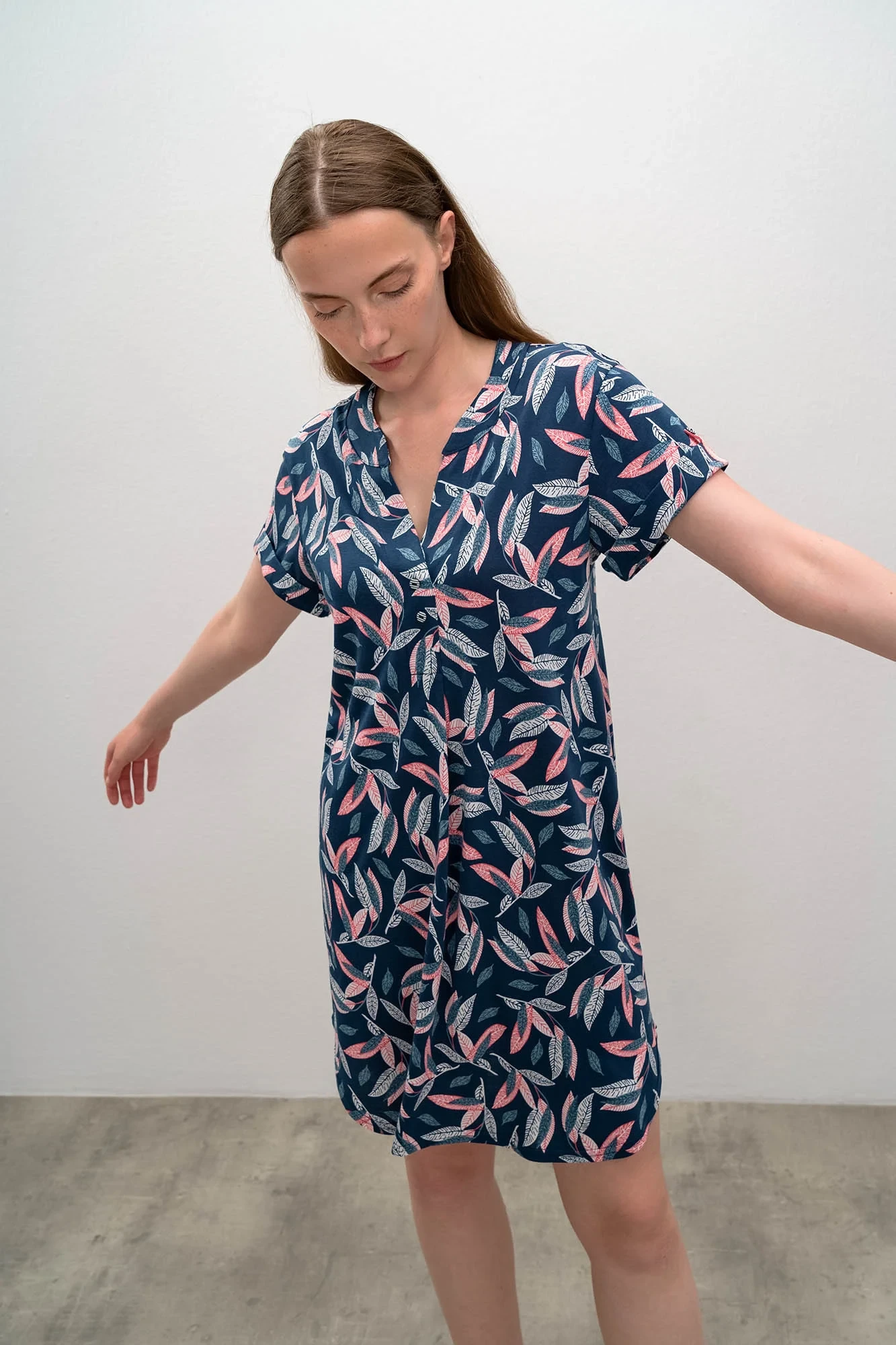 Dámská noční košile s potiskem listů pro pohodlné spaní i pro romantické chvíle. Noční košile je vyrobená z kvalitní přírodní řecké bavlny s příměsí modalu. Oba typy tkanin poskytují vysoké pohodlí, příjemný pocit na dotek, prodyšnost a odolnost, modal pak i zvýšenou lehkost a pružnost.