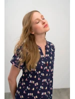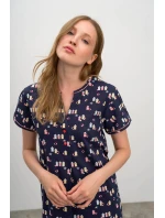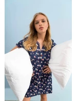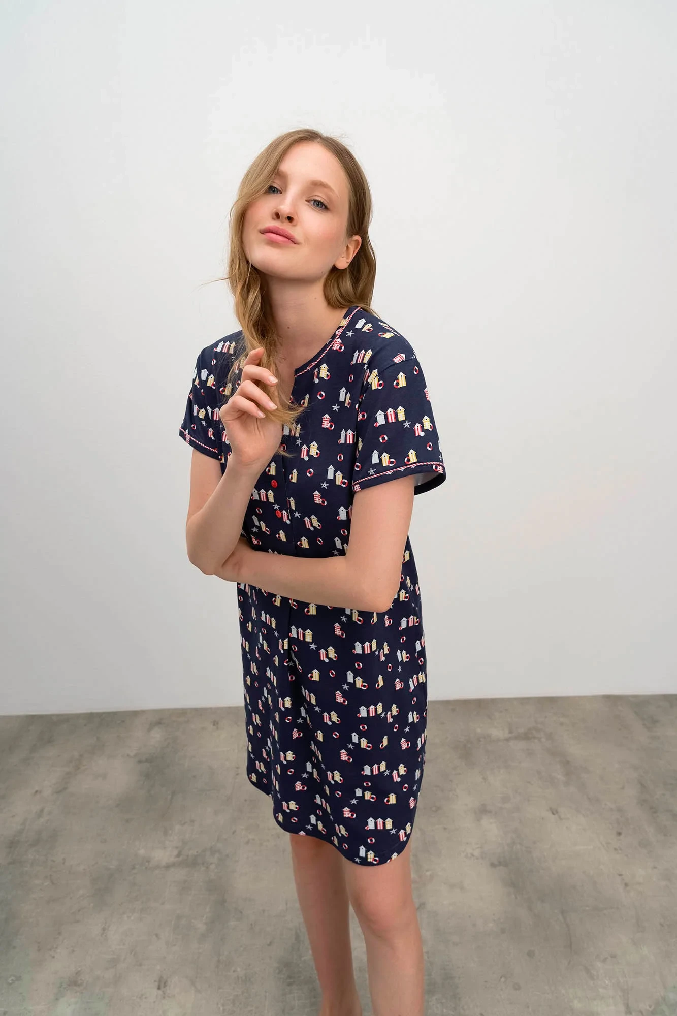 Dámská noční košile pro kvalitní spánek Pohodlná noční košile s krátkým rukávem a výstřihem do V s roztomilým potiskem domečků je vyrobená z vysoce kvalitní, genetický nemodifikované řecké bavlny, která poskytuje vysoké pohodlí, příjemný pocit na dotek, prodyšnost, pružnost a odolnost.