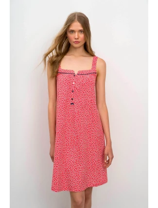 Dámská noční košile pro kvalitní spánek. Pohodlná noční košile na ramínka s knoflíkovou légou a hranatým výstřihem, potištěna roztomilým potiskem hvězdic je vyrobená z vysoce kvalitní, genetický nemodifikované řecké bavlny, která poskytuje vysoké pohodlí, příjemný pocit na dotek, prodyšnost, pružnost a odolnost.