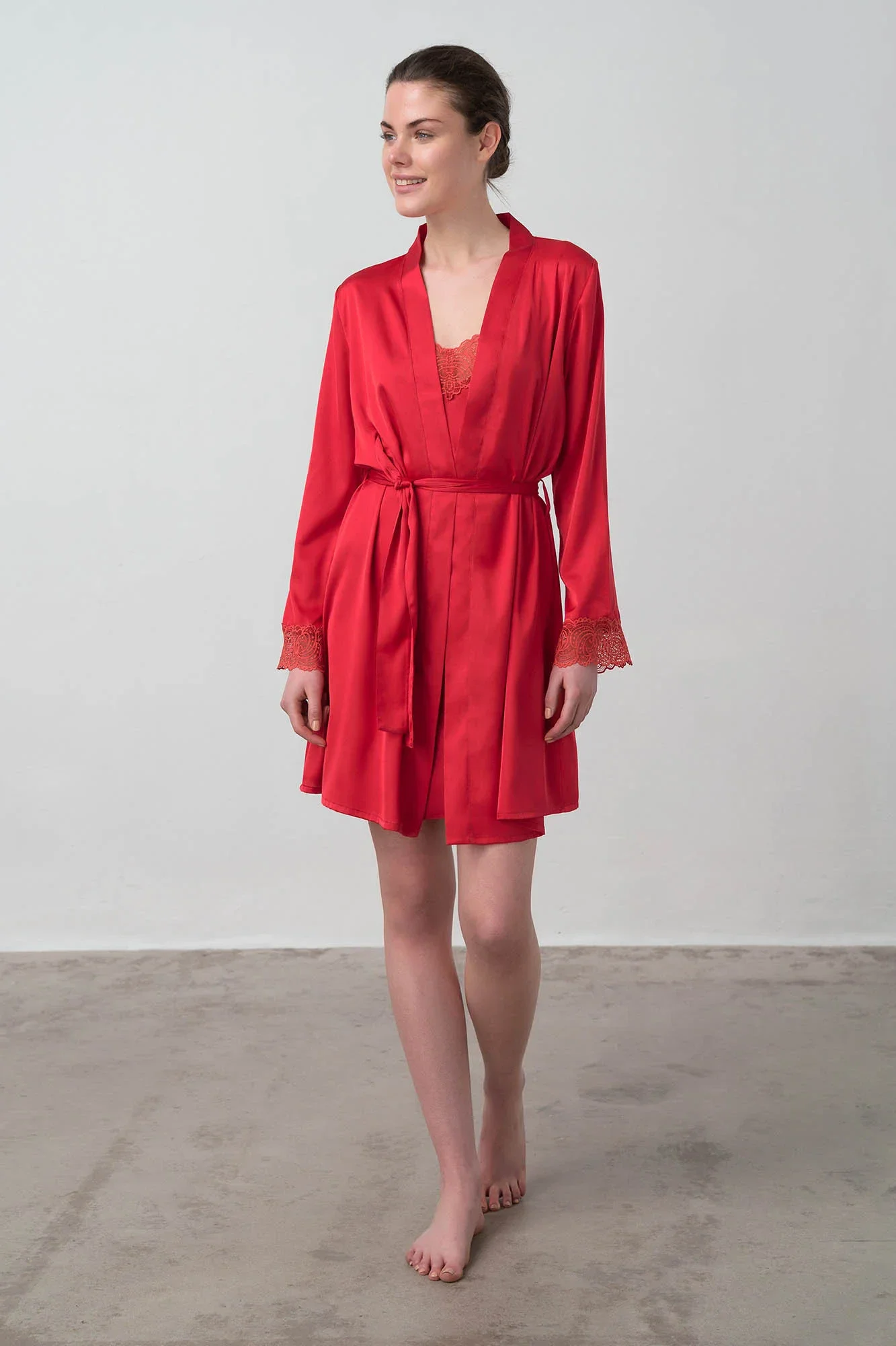 Představujeme vám krásnoý saténový župan zdobený rafinovanou krajkou kolem rukávu. Tento župan si zamilujete na první obléknutí! A navíc ta krajka! Hebký satén krásně splývá po těle.