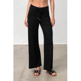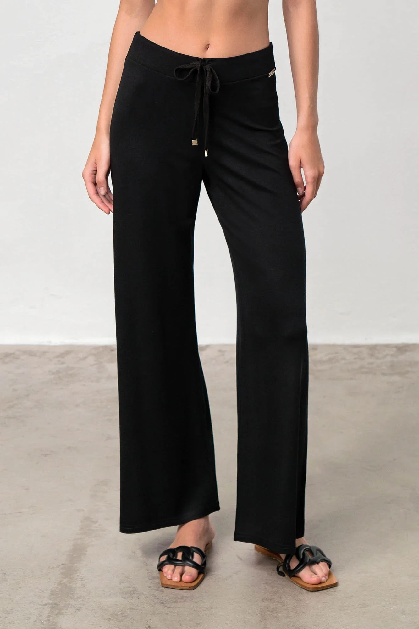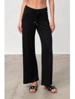 - délka a střih: dlouhé, do zvonu, široká guma a stahovací šňůrka v pase