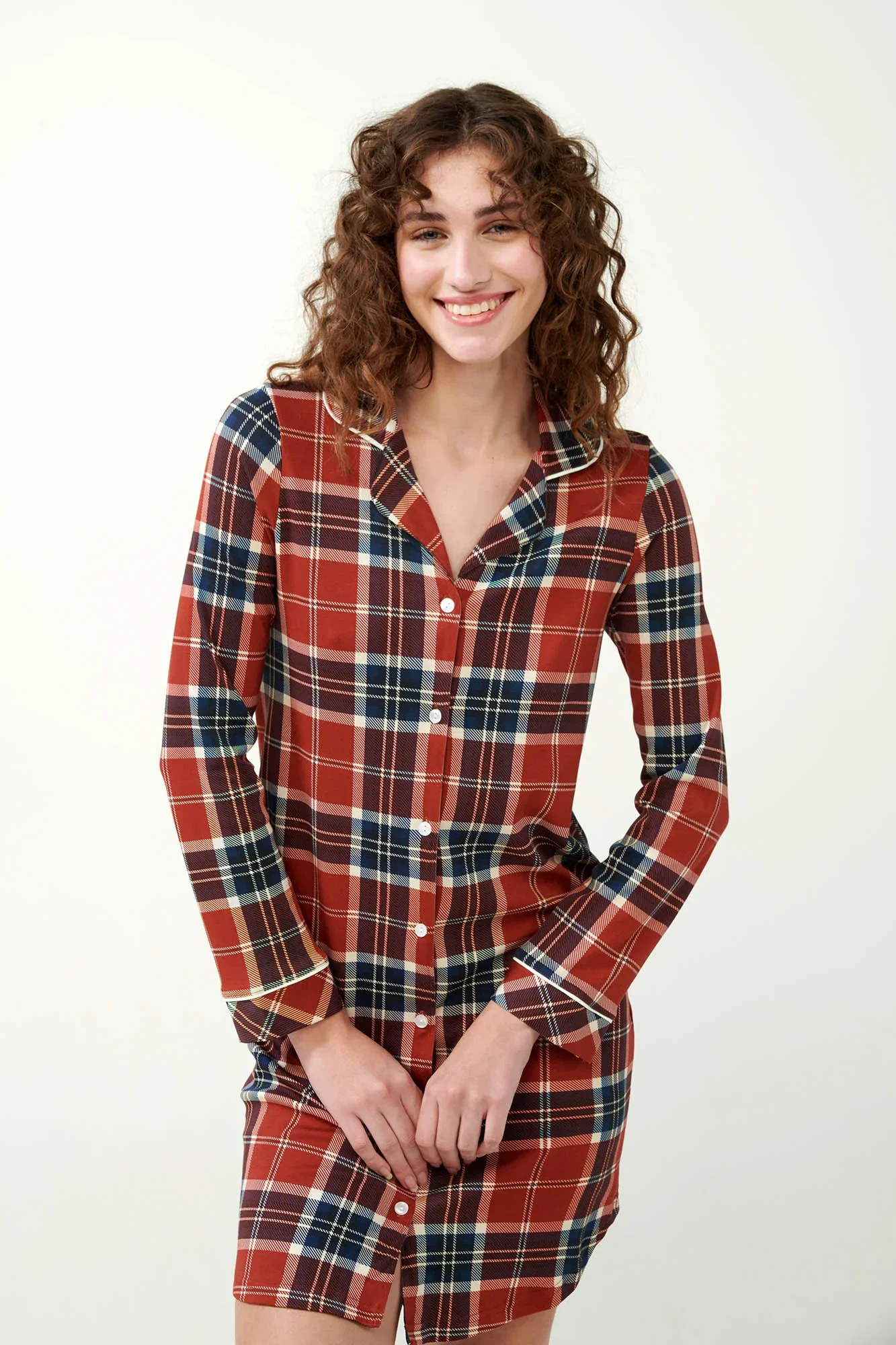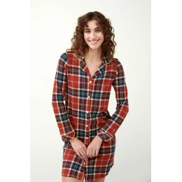 Vamp - Vánoční noční košile s knoflíky ve skotském tartanu 21511 - Vamp