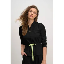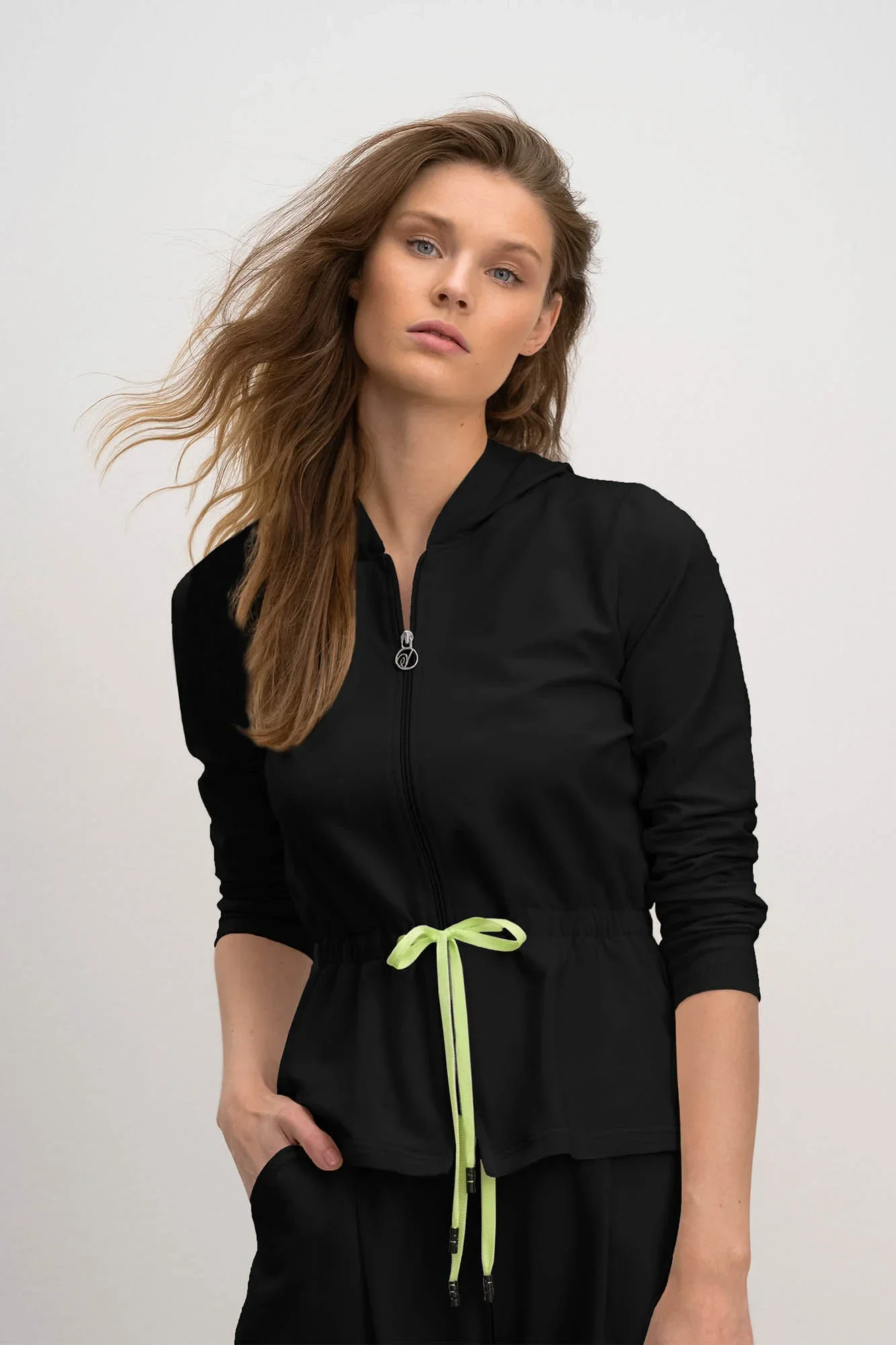 Pohodlná celopropínací jednobarevná dámská mikina s kapucí a barevnou šńůrkou v pase ke stažení, která ideálně přiléhá k tělu a při nošení jsou zárukou skvělého pocitu a sebevědomí. Dámská mikina jsou vyrobená z vysoce kvalitní řecké bavlny s příměsí Elastanu. Řecká bavlna je vysoce kvalitní, genetický nemodifikovaná, která poskytuje vysoké pohodlí, příjemný pocit na dotek, prodyšnost, pružnost a odolnost, zatímco Elastan dodává oděvu potřebnou pružnost.