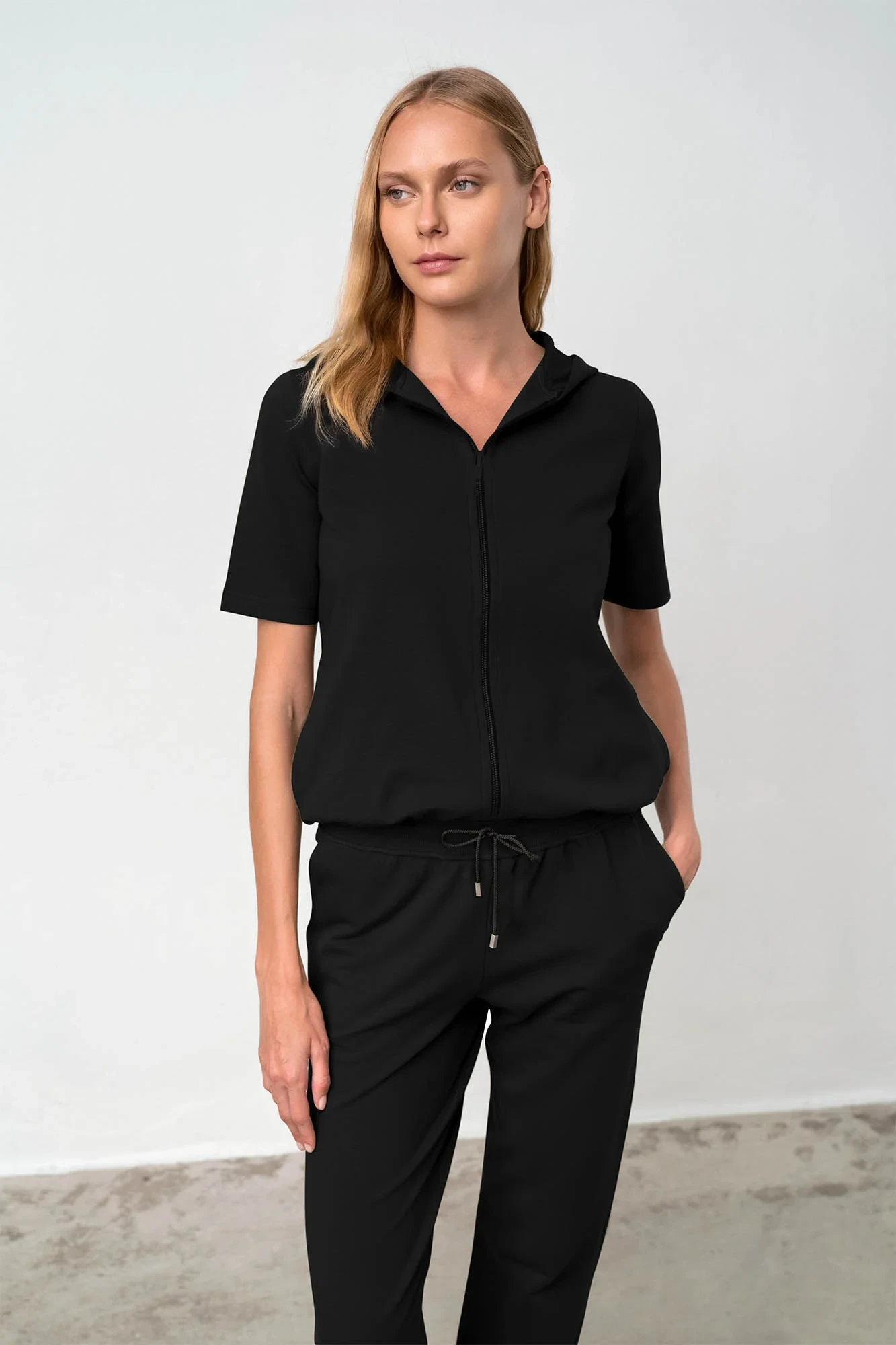 - střih: celopropínací na zip, s kapucí, krátký rukáv