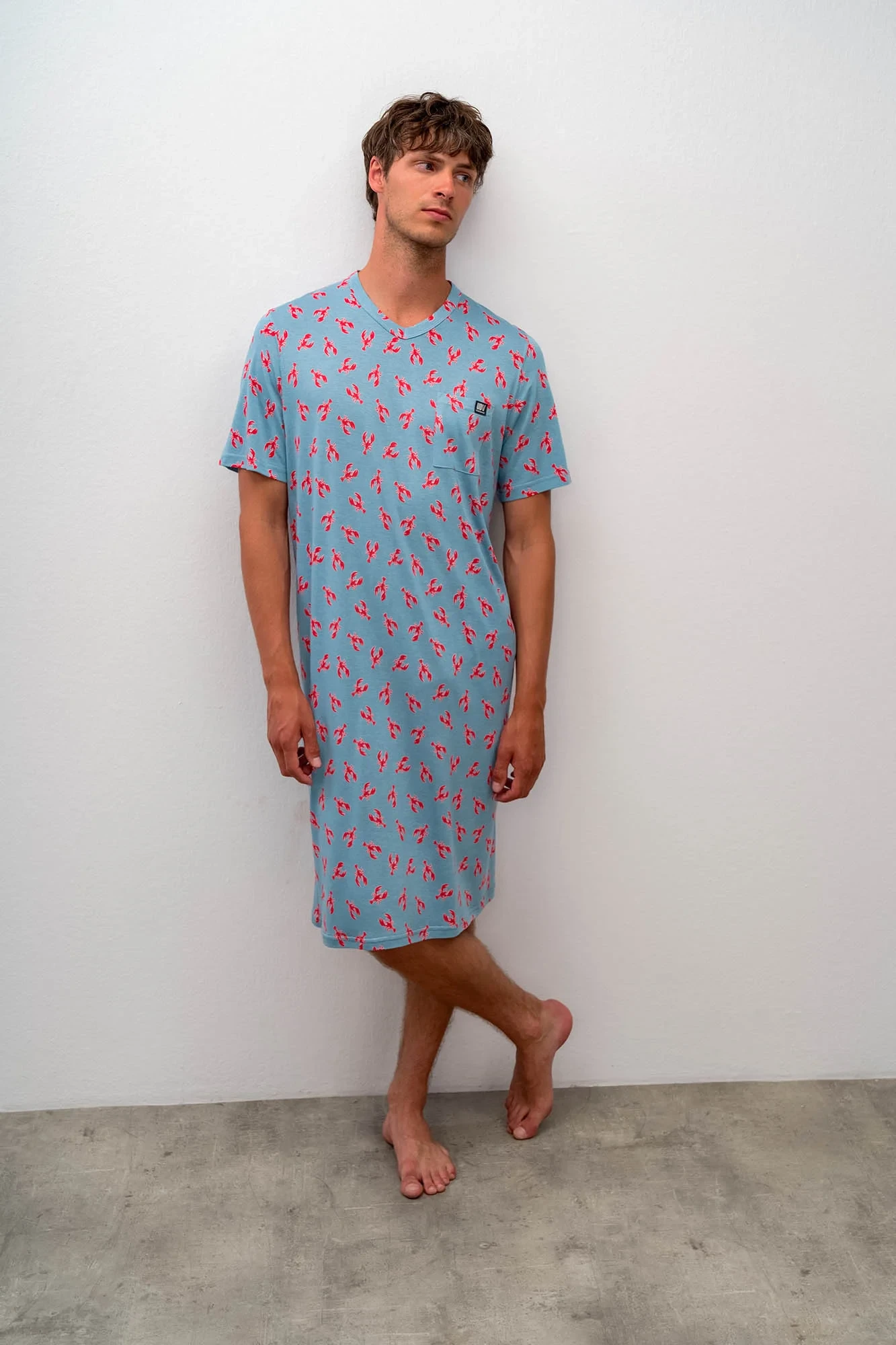 Pohodlná pánská noční košile pro dobrý a zdravý spánek. Noční košile je s krátkým rukávem, náprsní kapsičkou a výstřihem do V a zdobí ji račí potisk. Tato noční košile je vyrobena z vysoce kvalitní, genetický nemodifikované řecké bavlny, která poskytuje vysoké pohodlí, příjemný pocit na dotek, prodyšnost, pružnost a odolnost. Modalové vlákno je přírodního charakteru, je nesmírně poddajné a splývavé a zachovává svou měkkost, krásnou barvu a tvar i po mnoha vypráních.