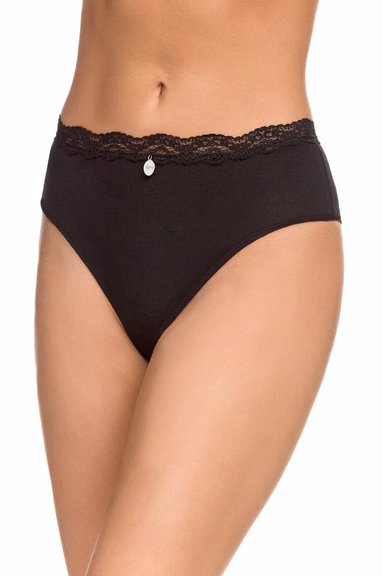 Pohodlné dámské kalhotky s krajkou, které ideálně přiléhájí k tělu a při nošení jsou zárukou skvělého pocitu a sebevědomí. Dámské kalhotky jsou vyrobeny z vysoce kvalitní řecké bavlny s příměsí Elastanu. Řecká bavlna je vysoce kvalitní, genetický nemodifikovaná, která poskytuje vysoké pohodlí, příjemný pocit na dotek, prodyšnost, pružnost a odolnost, zatímco Elastan dodává oděvu potřebnou pružnost.