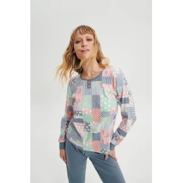 - horní část: dlouhý rukáv, kulatý výstřih s knoflíkovou légou