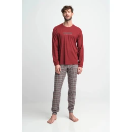 Pohodlné dvoudílné pánské pyžamo pro kvalitní spánek a volný čas. Komplet sestává z trika s dlouhým rukávem a z kulatým výstřihem s knoflíkovou légou, který doplňují dlouhé karované kalhoty rovného střihu s pohodlnou gumou v pase. Toto pánské pyžamo je vyrobené z vysoce kvalitní, genetický nemodifikované řecké bavlny, která poskytuje vysoké pohodlí, příjemný pocit na dotek, prodyšnost, pružnost a odolnost. Úplet interlock přispívá k tomu, že se tkanina nekrčí, je odolná, pevná a hřejivá.