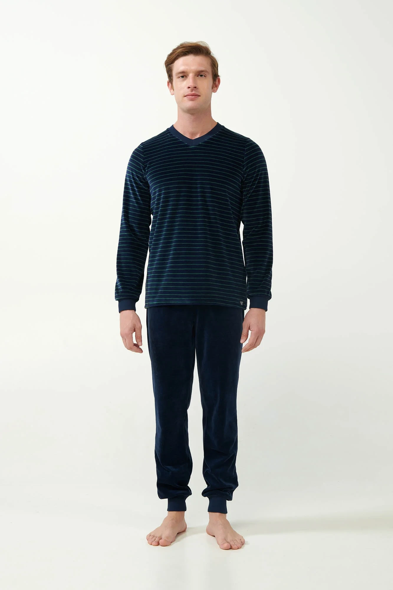 Vamp - Sametové pruhované pyžamo 21710 - Vamp