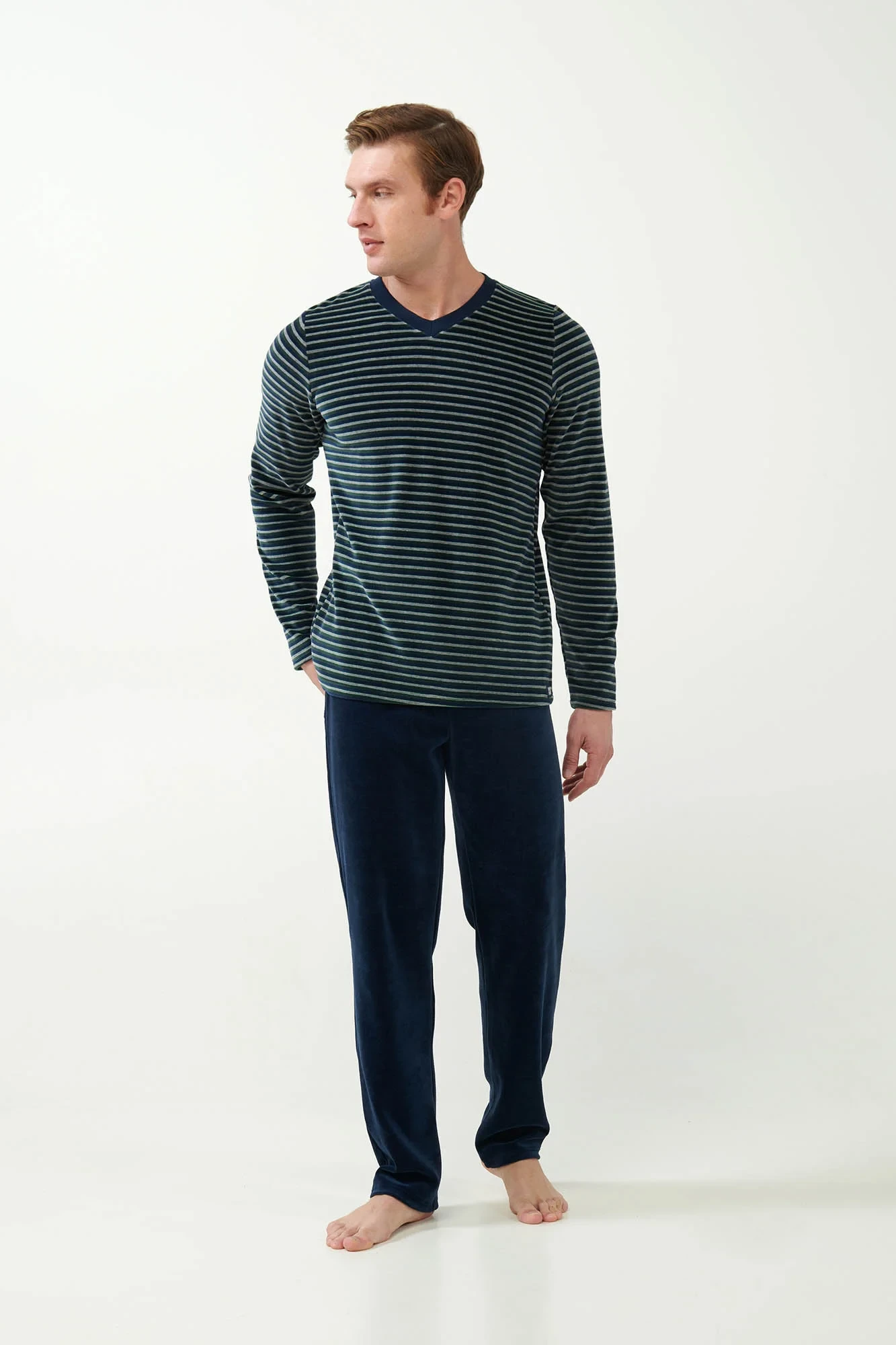 Vamp - Sametové pruhované pyžamo 21713 - Vamp