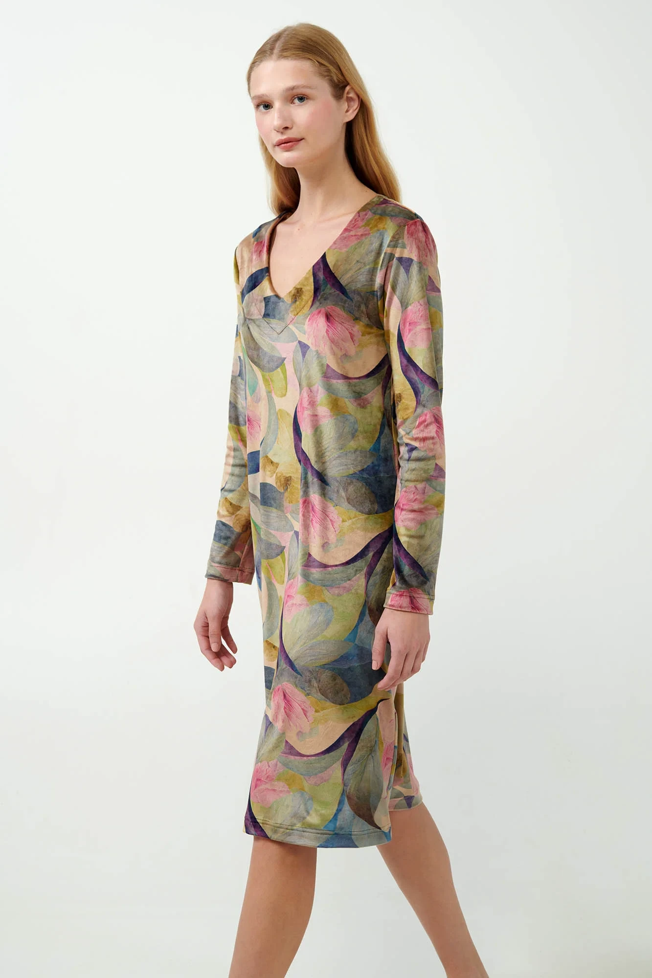 Vamp - Velurové šaty s květinovým potiskem 21130 - Vamp