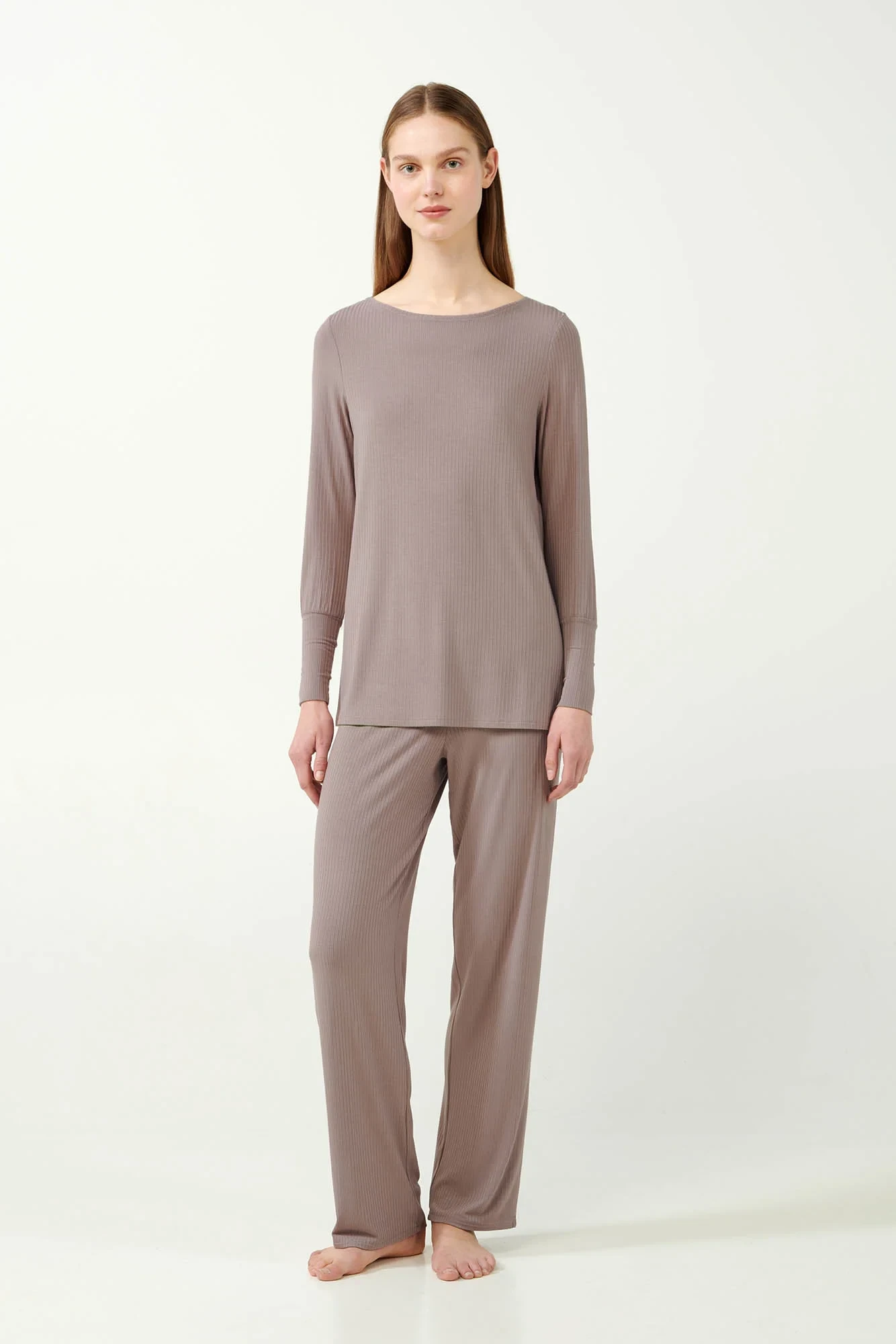 Vamp - Žebrované bambusové pyžamo s manžetovými rukávy 21175 - Vamp