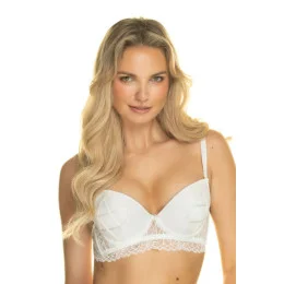 Biustonosz Konrad Vanessa w kolorze ecru to połączenie subtelnej elegancji i zmysłowego stylu. Idealnie sprawdzi się jako bielizna ślubna, ale również jako wyjątkowy element codziennej garderoby. Miseczki usztywniane z fiszbinami pięknie modelują biust, zapewniając komfort i stabilność przez cały dzień. Delikatna koronka i transparentne wstawki z siateczki tworzą wyjątkowo kobiecy design. Ecru to kolor pełen klasy – cieplejszy niż klasyczna biel, dzięki czemu pasuje do każdego odcienia skóry. Regulowane ramiączka i praktyczne zapięcie z tyłu umożliwiają idealne dopasowanie. To bielizna stworzona z myślą o kobietach, które chcą wyglądać olśniewająco i czuć się wyjątkowo.