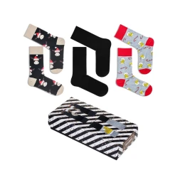 Vánoční pánské ponožky v elegantní krabičce jsou skvělou volbou na dárek. Sada obsahuje tři páry v různých zimních vzorech, které dodají šarm každému stylu. Měkké, pohodlné a velmi komfortní — ideální na chladné dny a jako roztomilý sezónní dárek.