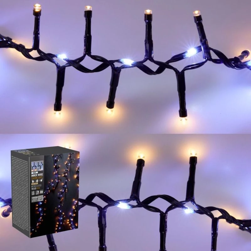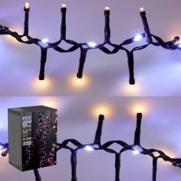 Světelný řetěz 710 LED WHITE/Warm White je dokonalou kombinací klasické elegance a moderního světelného efektu. Variabilní barva světla vám dává naprostou svobodu při uspořádání - od chladné zimní záře až po útulné zlatavé světlo Vánoc.
