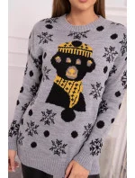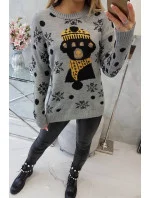 Vánoční svetr s medvídkem šedý
