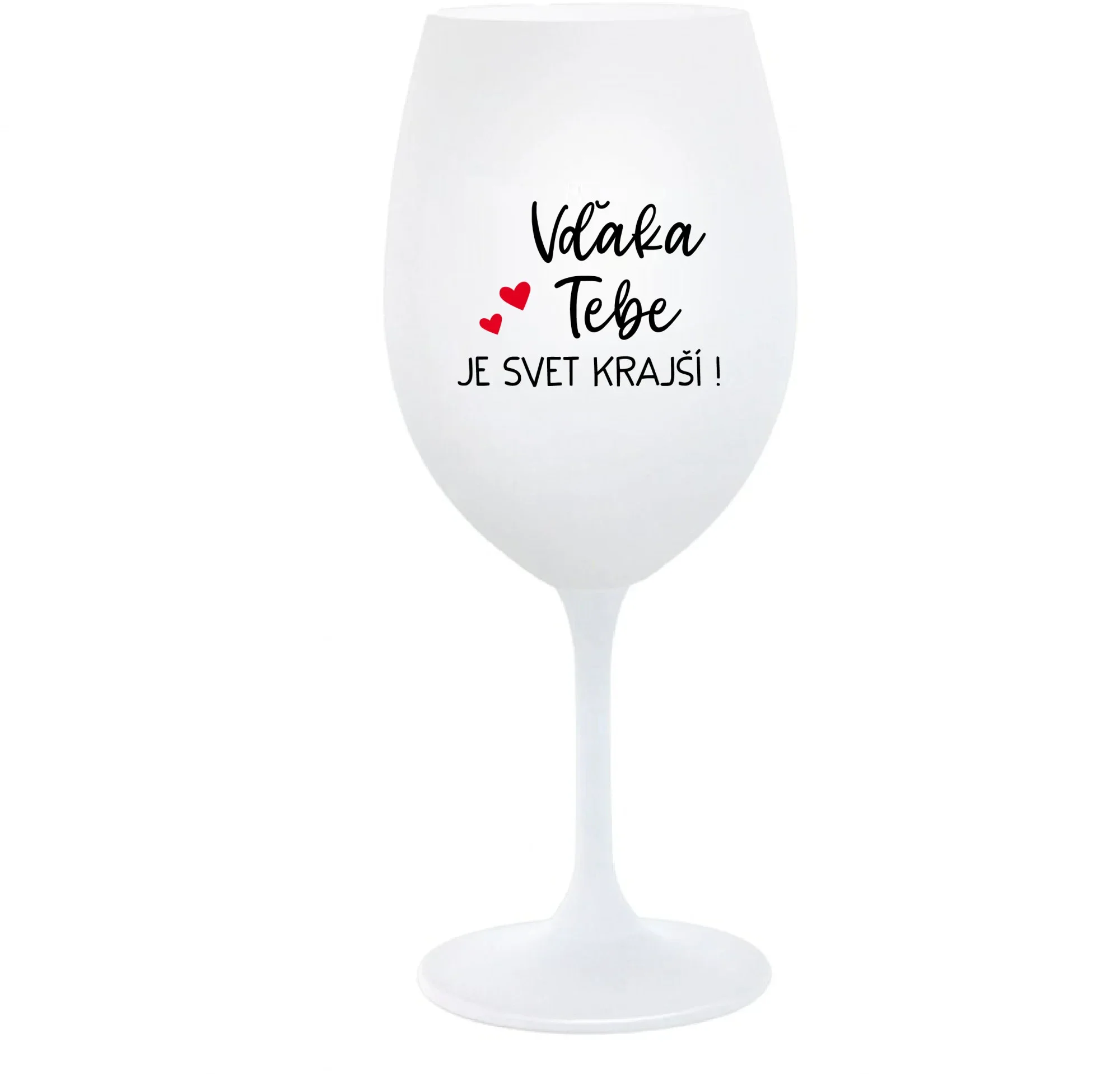 VĎAKA TEBE JE SVET KRAJŠÍ! - biely pohár na víno 350 ml