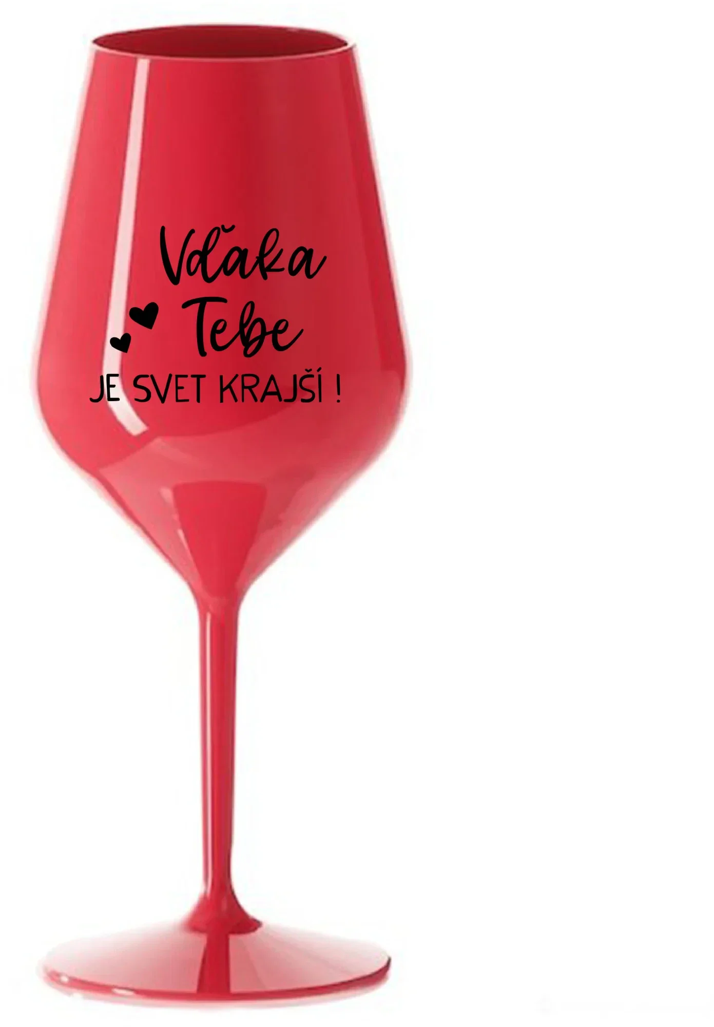 VĎAKA TEBE JE SVET KRAJŠÍ! - červený nerozbitný pohár na víno 470 ml