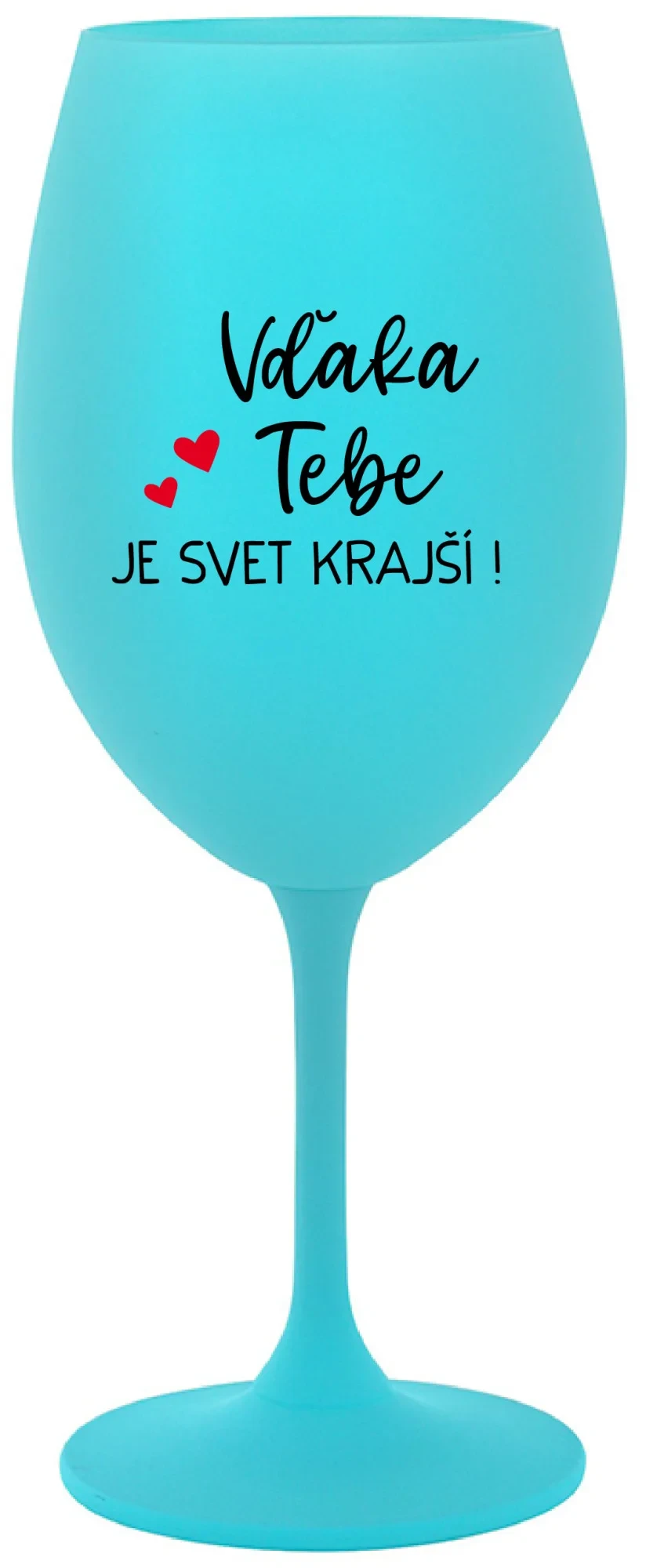 VĎAKA TEBE JE SVET KRAJŠÍ! - tyrkysový pohár na víno 350 ml