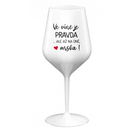 VE VÍNĚ JE PRAVDA...ALE AŽ NA DNĚ, MRŠKA! - bílá nerozbitná sklenice na víno 470 ml