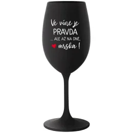 Vinná černá sklenice s originálním motivem VE VÍNĚ JE PRAVDA...ALE AŽ NA DNĚ, MRŠKA! je krásným a osobitým dárkem, které ale využijete i Vy sami třeba ve chvílích, kdy si budete chtít zpříjemnit náročný den. Tyto originální vinné sklenice jsou totiž nejen pro výjimečné události, ale i pro běžné večery, které si chcete zpříjemnit sklenkou dobrého vína. Jistě proto potěší každého milovníka vína, i toho, kdo si umí svůj život vychutnat plnými doušky.
