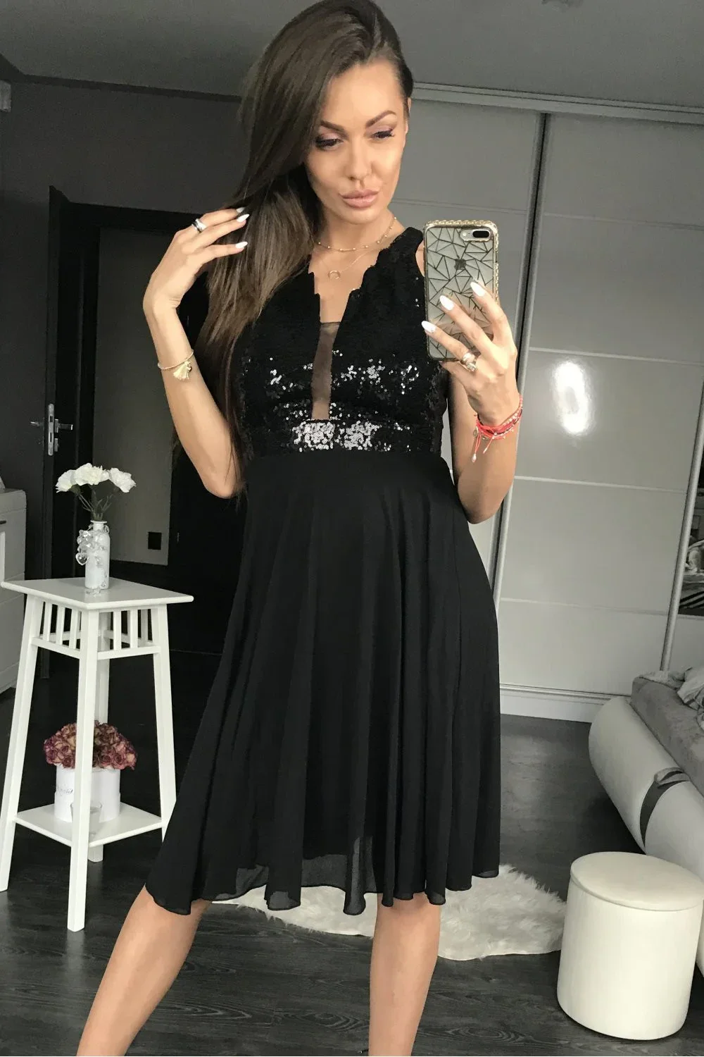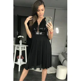 Jednoduché šaty s ozdobným vrškem. Spodní část je mírně rozšířená. Perfektní večerní nabídka.