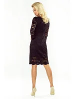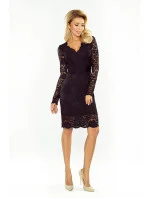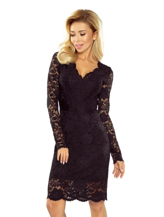 Černé krajkové šaty s výstřihem a dlouhými rukávy. Klasické a elegantní. Vyrobeno v Polsku.