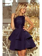 LAURA - šaty se silně rozšířenou sukní a krajkou - tmavě modré. Zapíná se vzadu na krytý zip. Značka Numoco. Polský výrobek.