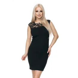 Mini šaty s gipurem ve výstřihu. Šaty rovného střihu, vypasované. Šaty bez rukávů.
