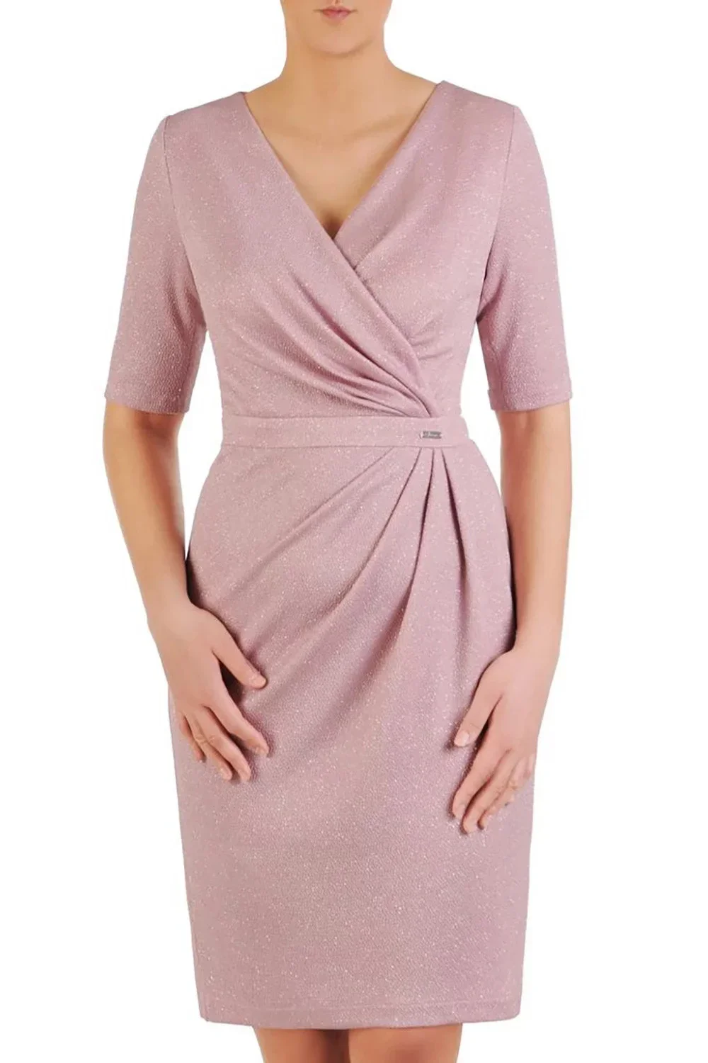 Přiléhavé šaty s řasením vpředu. Překrývající se výstřih, v pase přestřižený. Šaty mají skrytý zip.