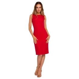 Klasické tužkové šaty bez rukávů s nádechem sofistikovanosti odhalují ramena a zdůrazňují křivky, na zádech mají hluboký výstřih zdobený řetízkem. Šaty se zapínají na krytý zip.