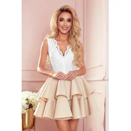 Dvoubarevné šaty s krajkovým výstřihem a pěnovým materiálem na sukni. Spodní část šatů v béžové barvě. Vyrobeno v Polsku. Značka numoco.