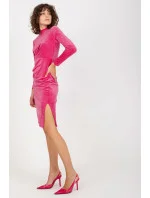 Velurové šaty s dlouhými rukávy a stojáčkem. Šaty s ozdobným řasením a rozparkem. Ideální pro mnoho příležitostí.