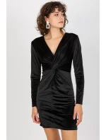 Přiléhavé velurové šaty s dlouhými rukávy a obálkovým výstřihem. Skvěle se hodí pro mnoho příležitostí.