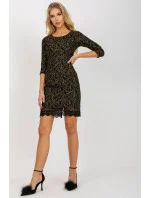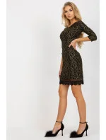 Krajkové krátké šaty s 3/4 rukávy a kulatým výstřihem. Šaty se zapínají na krytý zip.