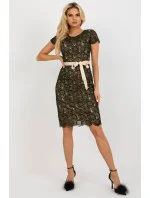 Šaty tužkového střihu s krátkými rukávy, zapínané na krytý zip. Šaty mají podšívku. S šerpou v pase na zavazování.