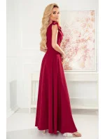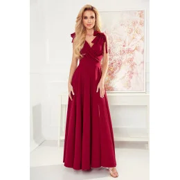 Dlouhé šaty s výstřihem, rozparkem na nohou a mašlemi na ramenou. Je vyrobena z látky příjemné na dotek v módní vínové barvě. Polský výrobek. Značka numoco.
