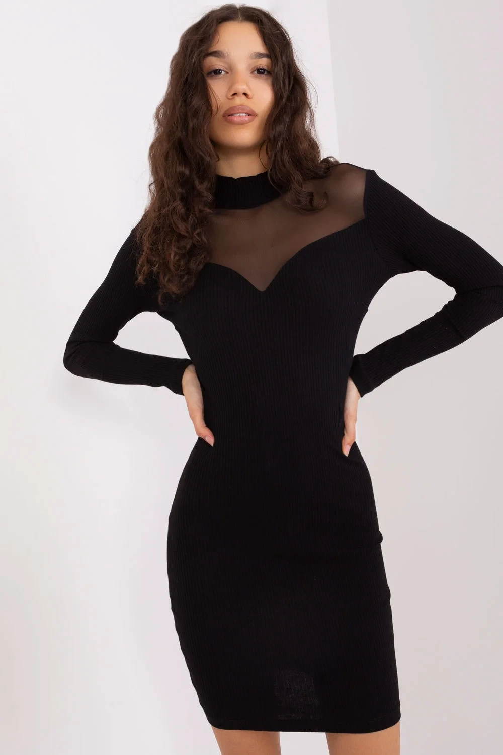 Tyto tužkové šaty jsou kombinací elegance a každodenního pohodlí. Mají jemný výstřih a horní část zad z průhledného materiálu, který jim dodává jemný půvab. Šaty jsou vhodné pro mnoho příležitostí. Jsou vyrobeny z bavlny a příjemně se nosí. Mají dlouhé rukávy, díky čemuž jsou vhodné pro různá roční období. Délka šatů sahá před kolena a jejich žebrovaný materiál jim dodává zajímavý vzhled. Jsou ideální volbou pro ženy, které ocení styl a pohodlí zároveň.