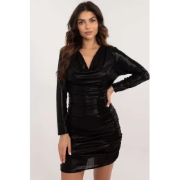 Smyslné olověná šaty z lesklé látky, ideální na večírky a formální příležitosti. Vyrobené z vysoce kvalitní směsi polyesteru a viskózy, zajistí elegantní vzhled a pohodlí při nošení. Mini délka odhaluje nohy, zatímco dlouhý rukáv přidává jemnosti. Šaty mají tekoucí výstřih, který se skládá do jemných záhybů, vytvářejíc efektní akcent. Různorodá struktura látky a decentní lesk dodávají celku moderní a luxusní charakter. Dekorativní záhyby dále zdůrazňují ženskou siluetu, a absenci zapínání dělají, že šaty vypadají minimalisticky a ideálně se přizpůsobují postavě.