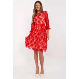 Krajkové šaty s 3/4 rukávy, zapínané na krytý zip. Šaty mají podšívku a v pase šerpu na zavazování.