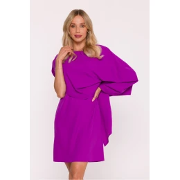 Elegantní koktejlové šaty s dekorativní pelerynou jsou výjimečným návrhem pro ženy, které ocení moderní formu a jemný lesk. Vyrobené z hladké látky s lehkým leskem, okouzlují svou jednoduchostí a efektními detaily. Model se vyznačuje kulatým výstřihem a asymetrickou, volně padající pelerynou, která vytváří stylové, smyslné rameno a dodává celku lehkost. Jednoduchý, lehce přizpůsobený spodek krásně zdůrazňuje postavu, zachovávaje přitom pohodlí nošení. Na boku je umístěn diskrétní, skrytý zip, který zajišťuje snadné oblékání a elegantní zakončení. Jemný lesk látky přidává kreaci eleganci, dělaje ji skvělou volbou pro večírky, slavnostní události nebo večerní vycházky. Navrženo a ušito v Polsku s důrazem na každý detail.