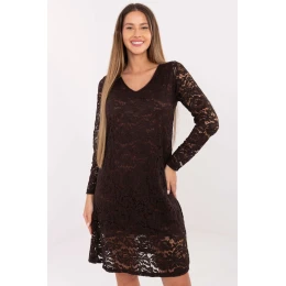 Elegantní šaty po kolena vyrobené z převažující směsi polyesteru a elastanu, která poskytuje pohodlí, pružnost a krásné přizpůsobení postavě. Model zaujme ažurovým vzorem a decentní krajkou, vytvářející mimořádně ženský a elegantní vzhled. Šaty mají podšívku, díky čemuž vypadají elegantně a zaručují plný komfort nošení, i když dlouhý rukáv zůstal bez podšívky, zachovávajíc lehkost a jemnost. Výstřih v podobě srdce se nachází jak vpředu, tak vzadu, což přidává kreaci smyslné, ale stále elegantní povahy. Model nemá zapínání, díky čemuž se snadno obléká a perfektně se přizpůsobuje postavě. Jedná se o ideální volbu na společenské události, ale také se skvěle hodí do práce, pokud chcete vypadat stylově, žensky a profesionálně zároveň.